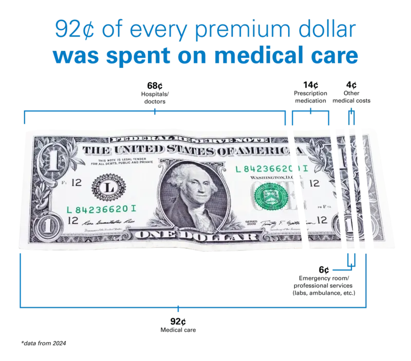 As a mission-driven nonprofit health plan, we spent 92 cents of every premium dollar collected in 2024 on health care for you, our members. The remainder of every dollar is primarily spent on taxes and operating expenses. Over the last 20 years, we averaged a net margin of 1.6 percent.