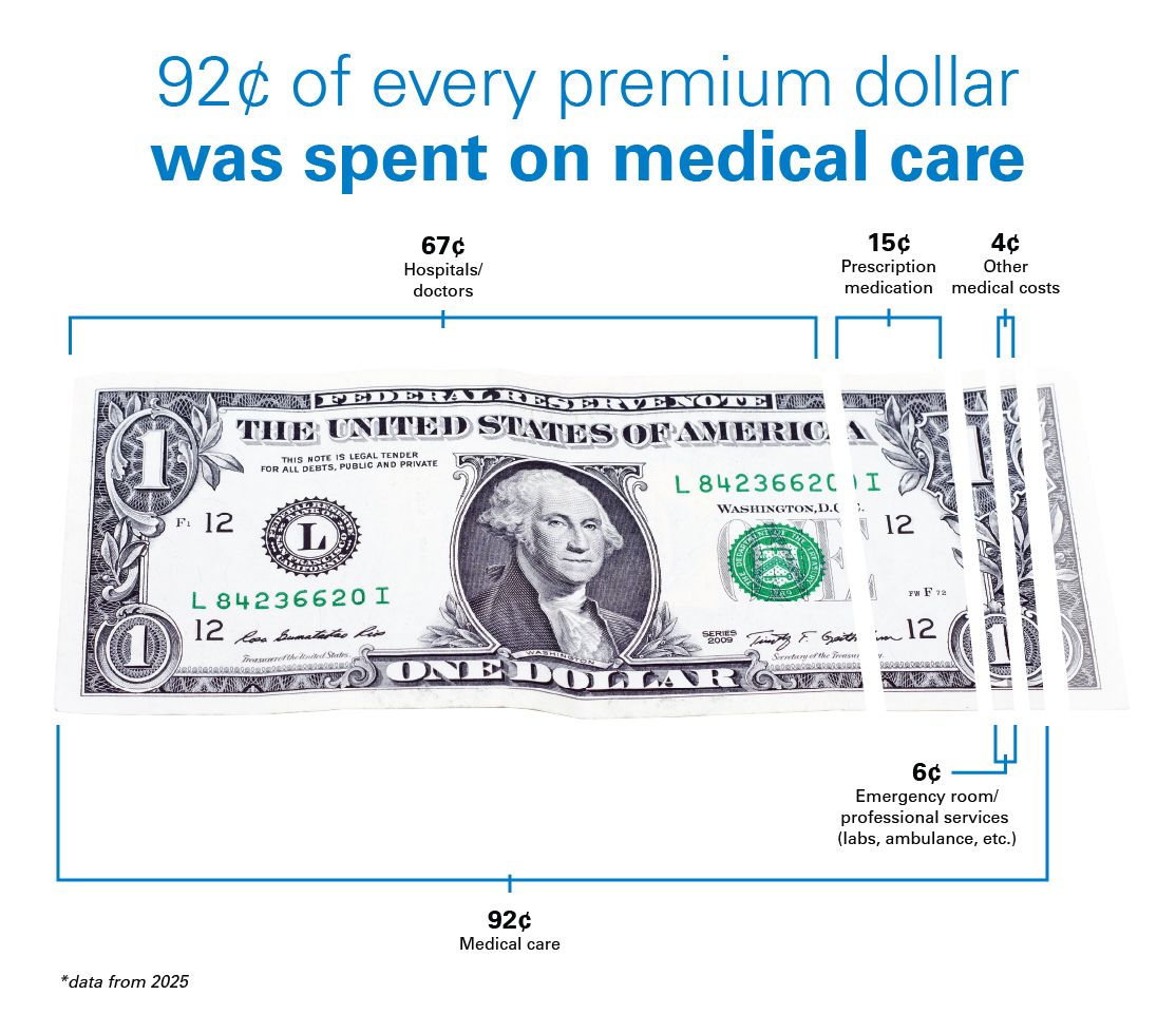 As a mission-driven nonprofit health plan, we spent 92 cents of every premium dollar collected in 2025 on health care for you, our members. The remainder of every dollar is primarily spent on taxes and operating expenses. Over the last 20 years, we averaged a net margin of 1.5 percent.